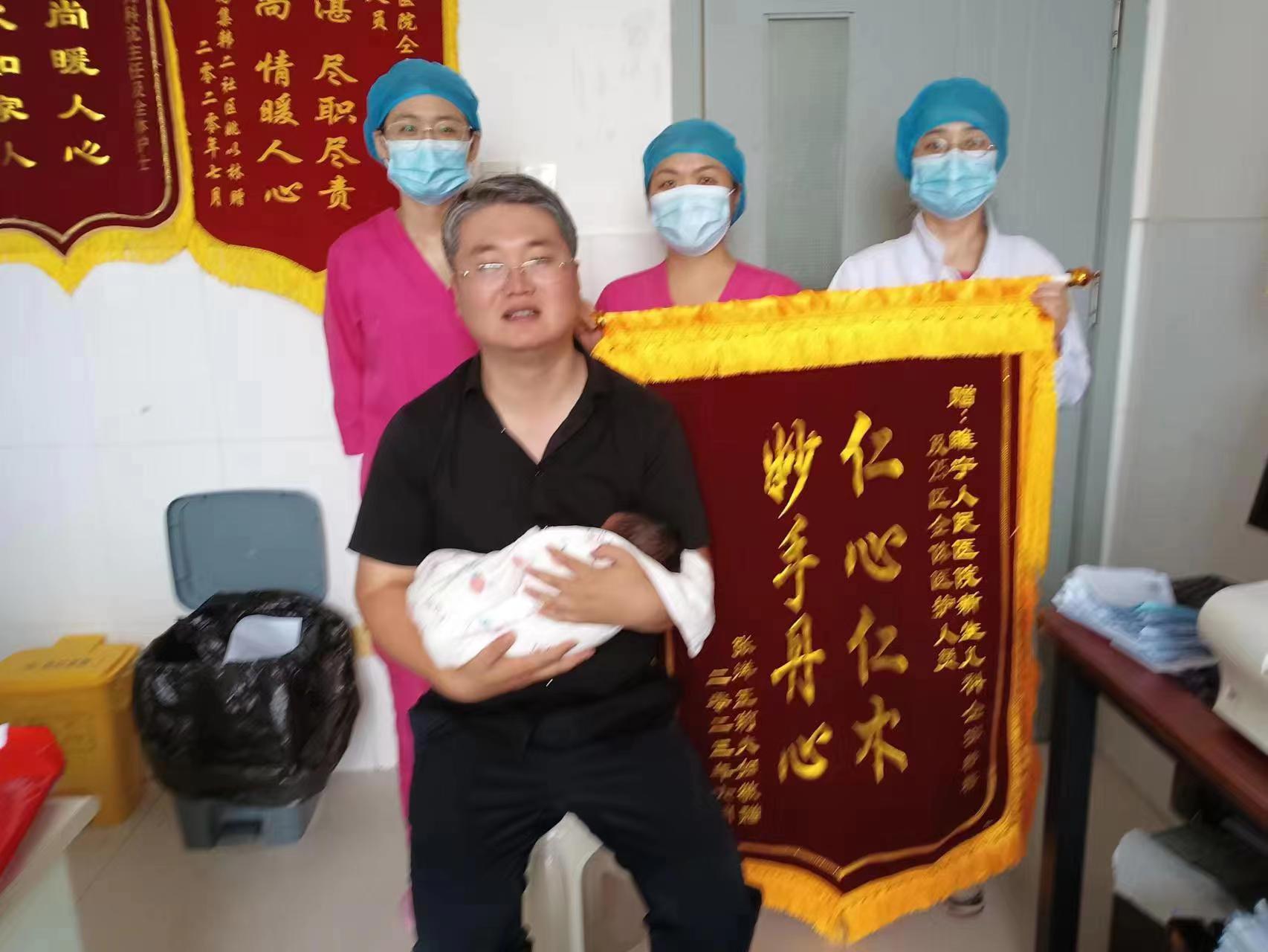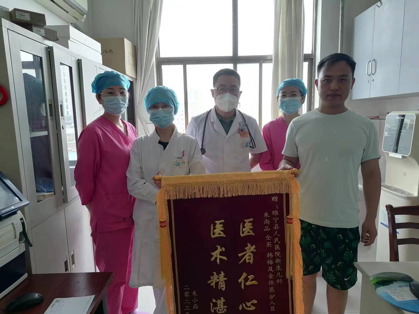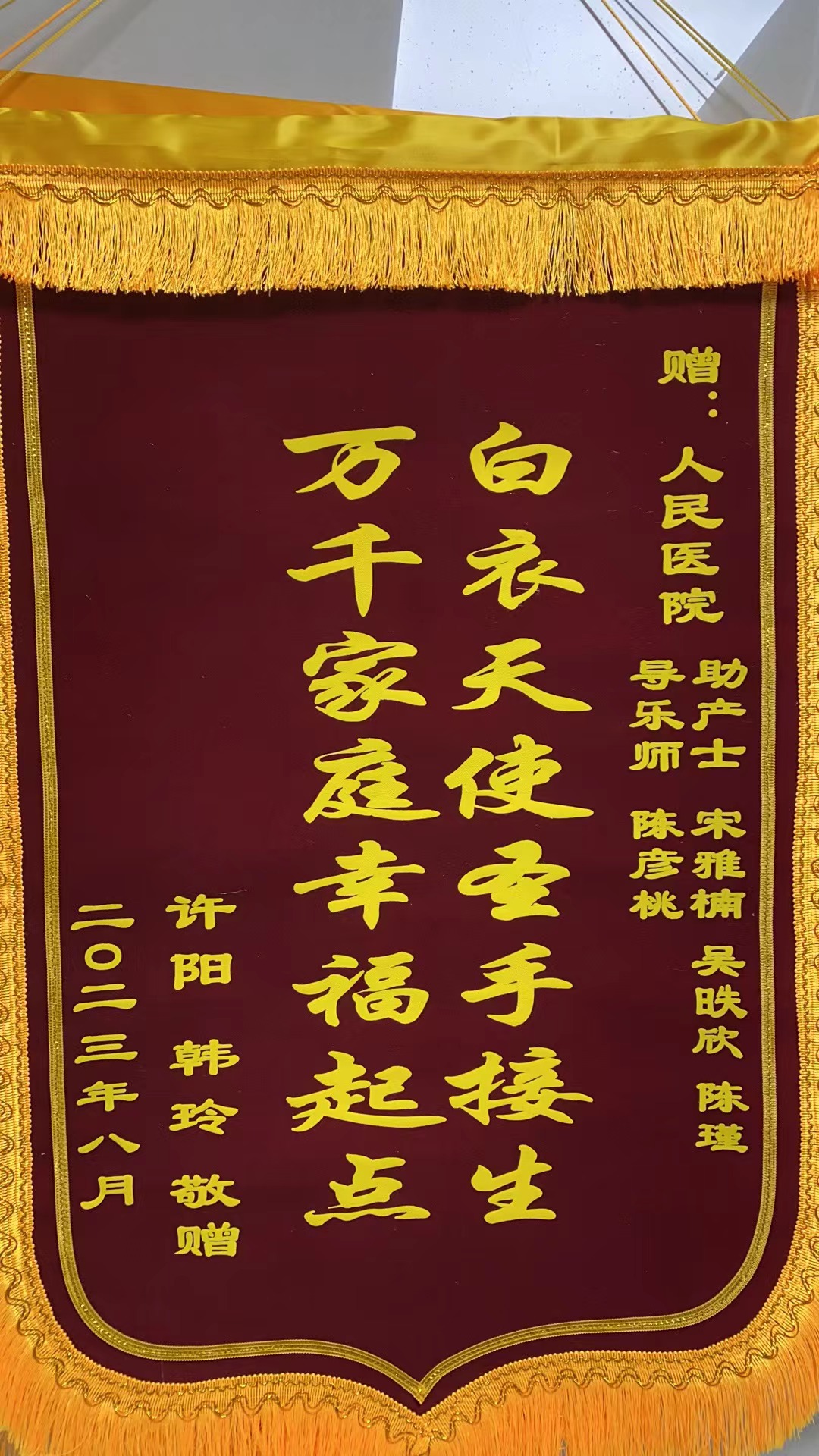 患者家人送新生儿朱尚品、仝实、韩梅及全体护理人员锦旗一面