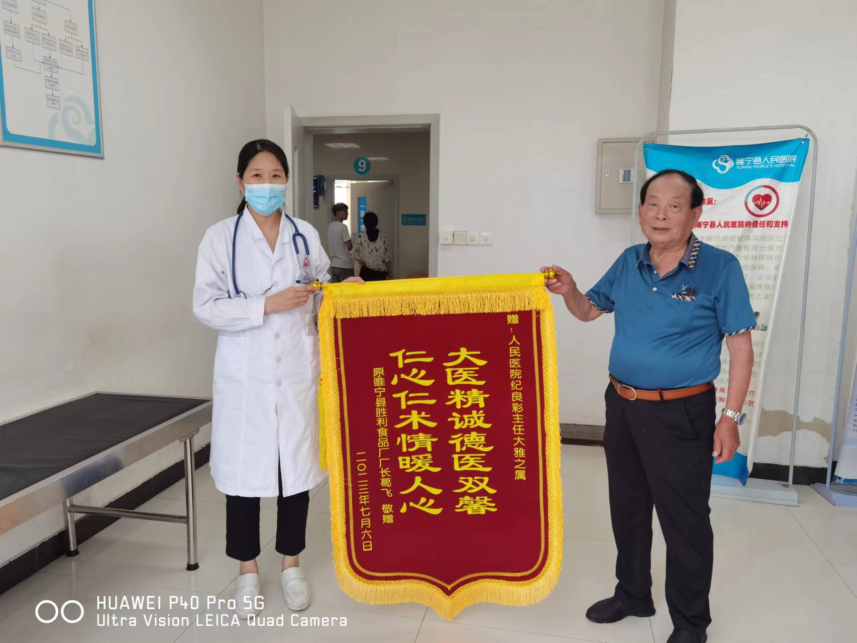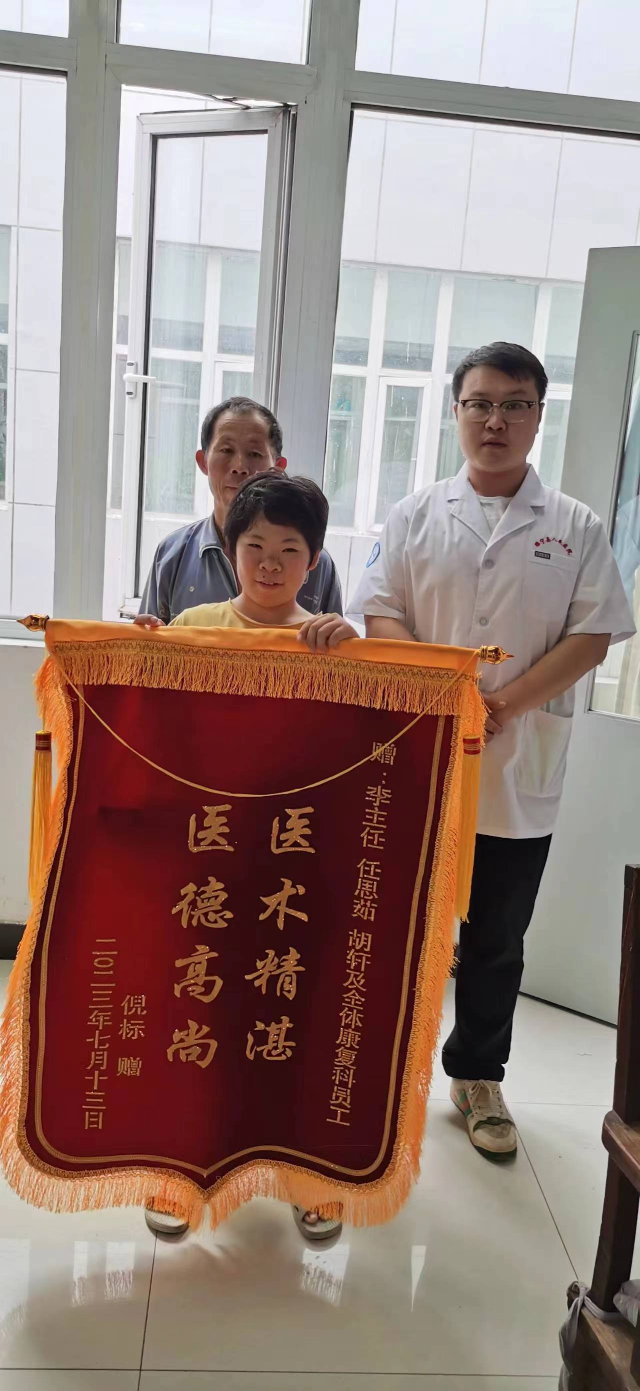 患者送康复科李阳、任思茹、胡轩锦旗一面