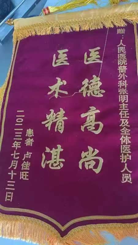 患者送锦旗一面,感谢医生仝实,韩梅及全体医护人员