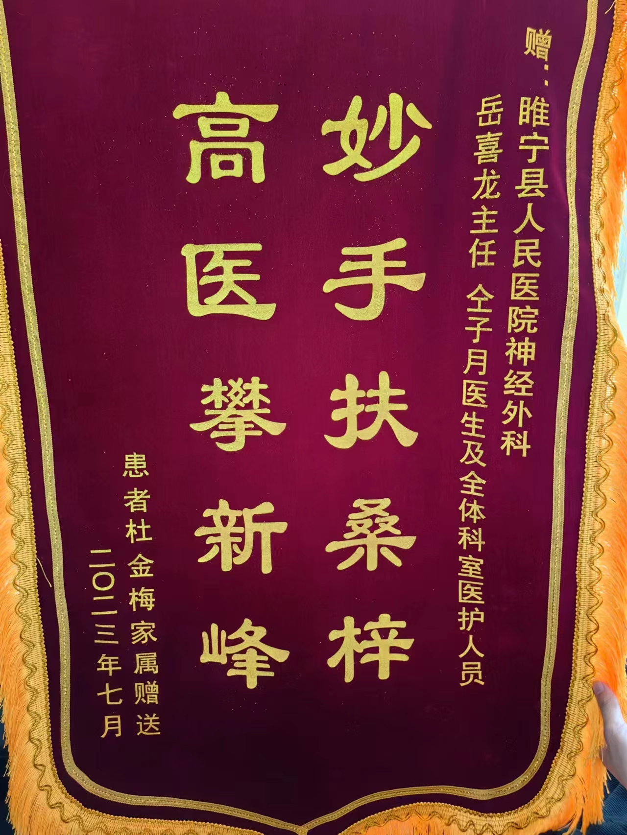 患者送岳喜龙,仝子月锦旗一面
