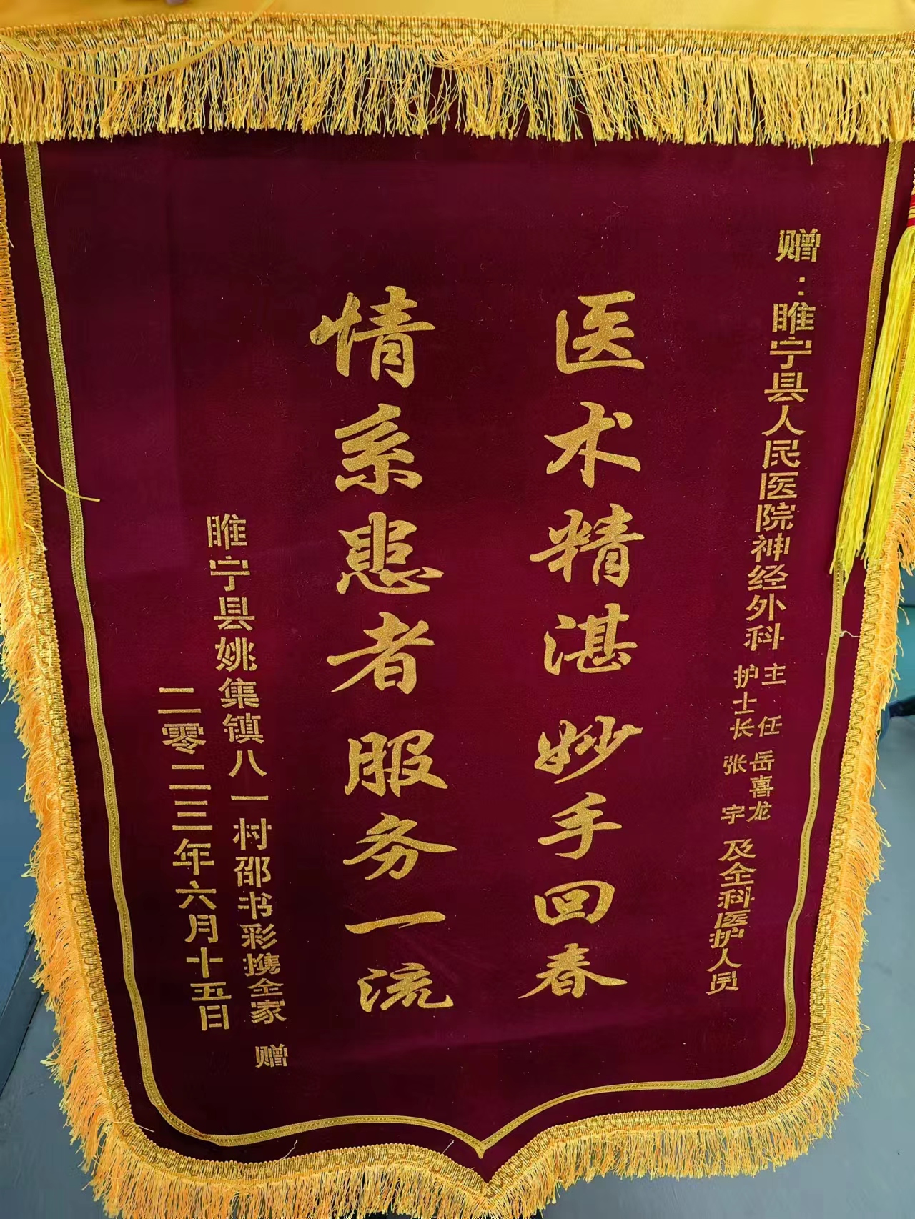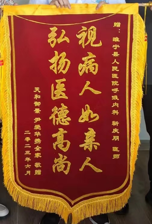 患者赠呼吸二靳庆朋医生锦旗一面,表示感谢