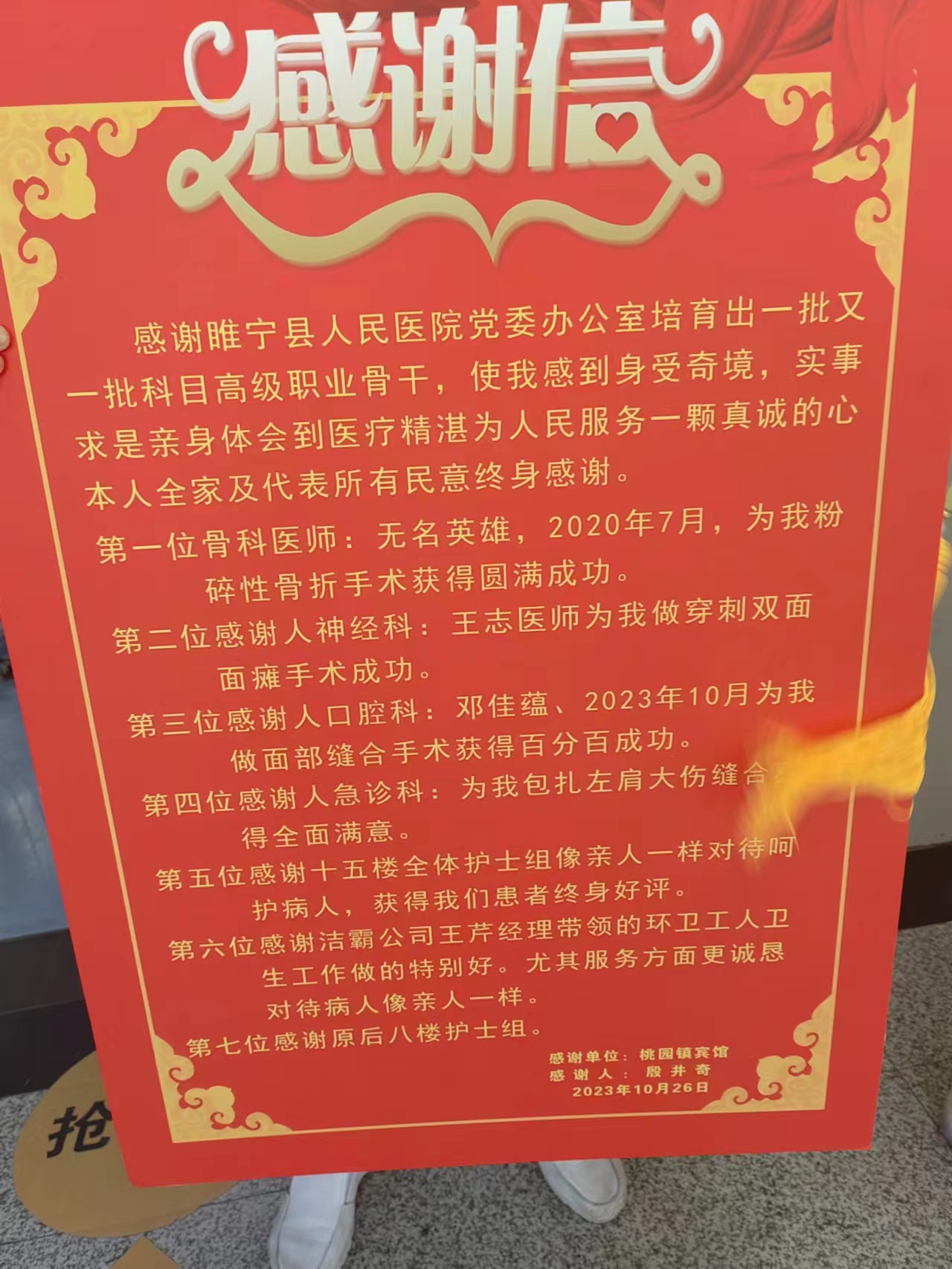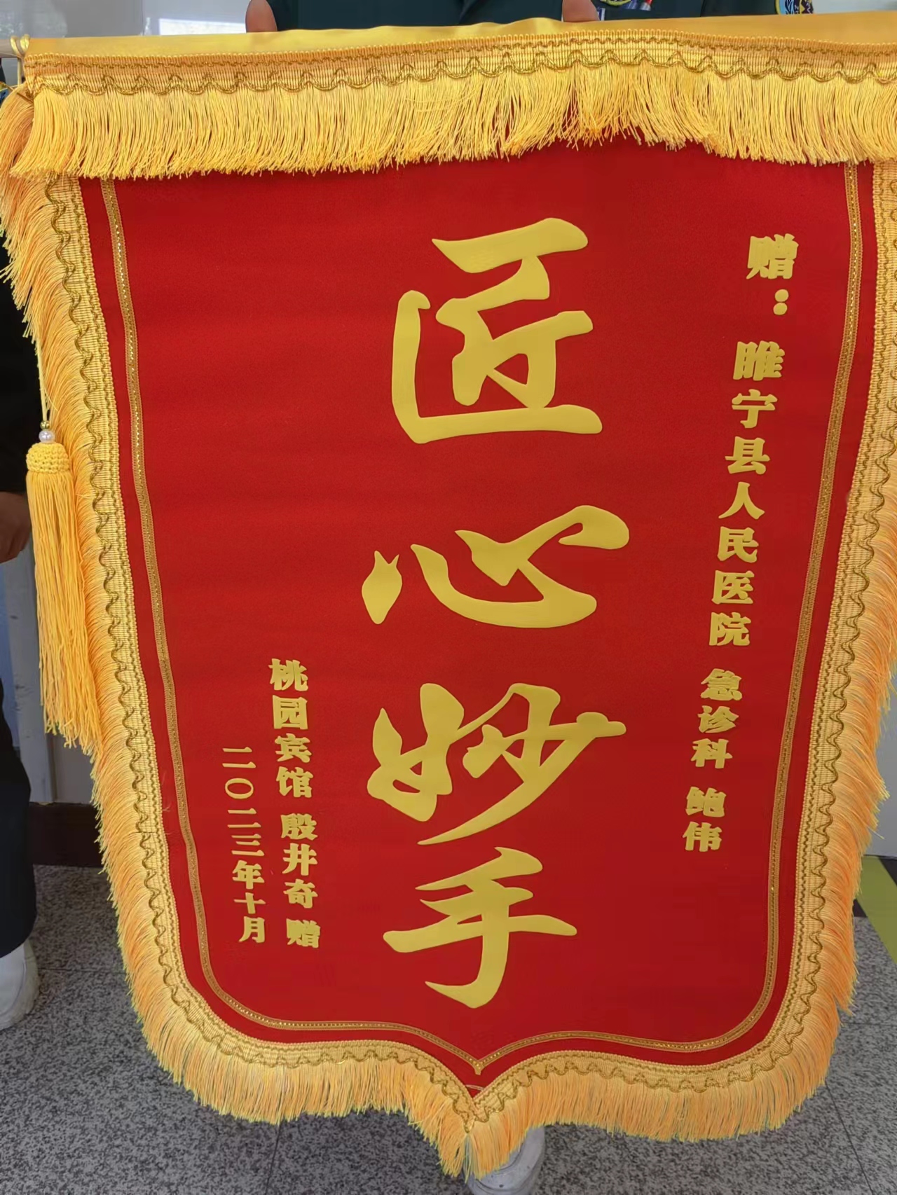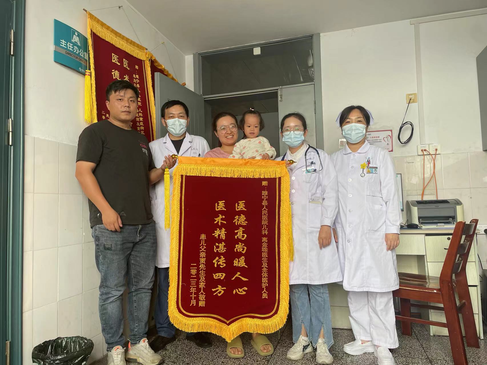 患儿父亲送儿科高金珠及全体医护人员锦旗一面表示感谢