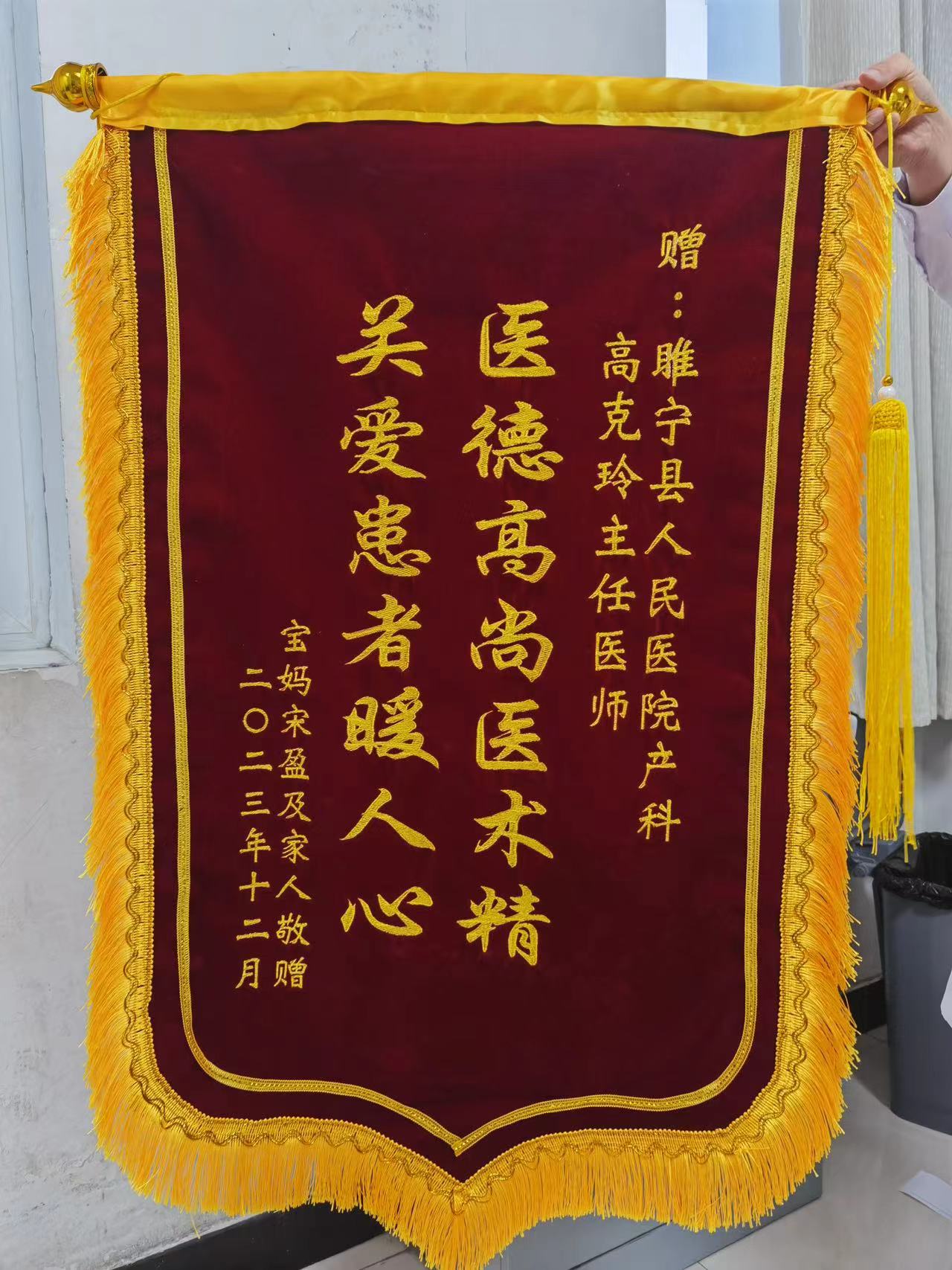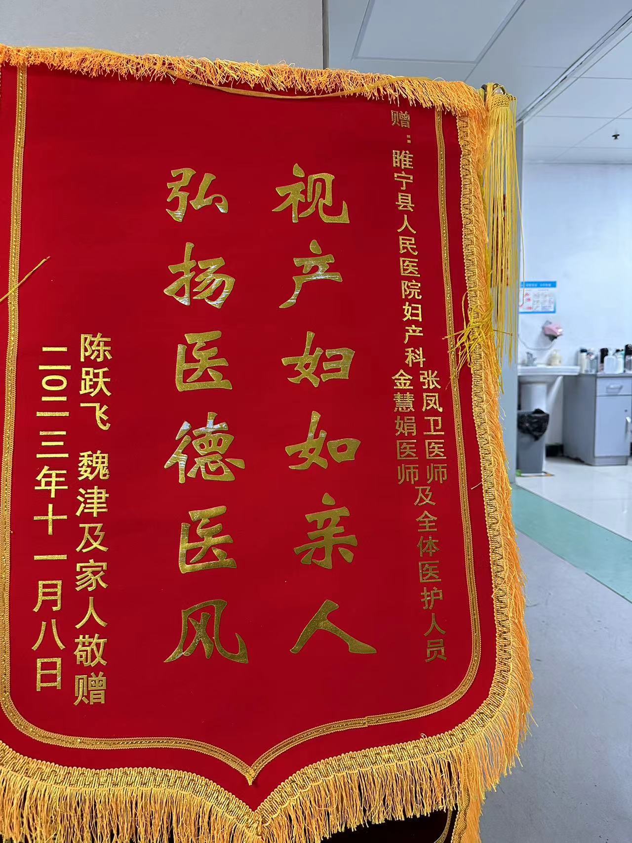 产妇送锦旗一面感谢张凤卫医生及全科医护人员