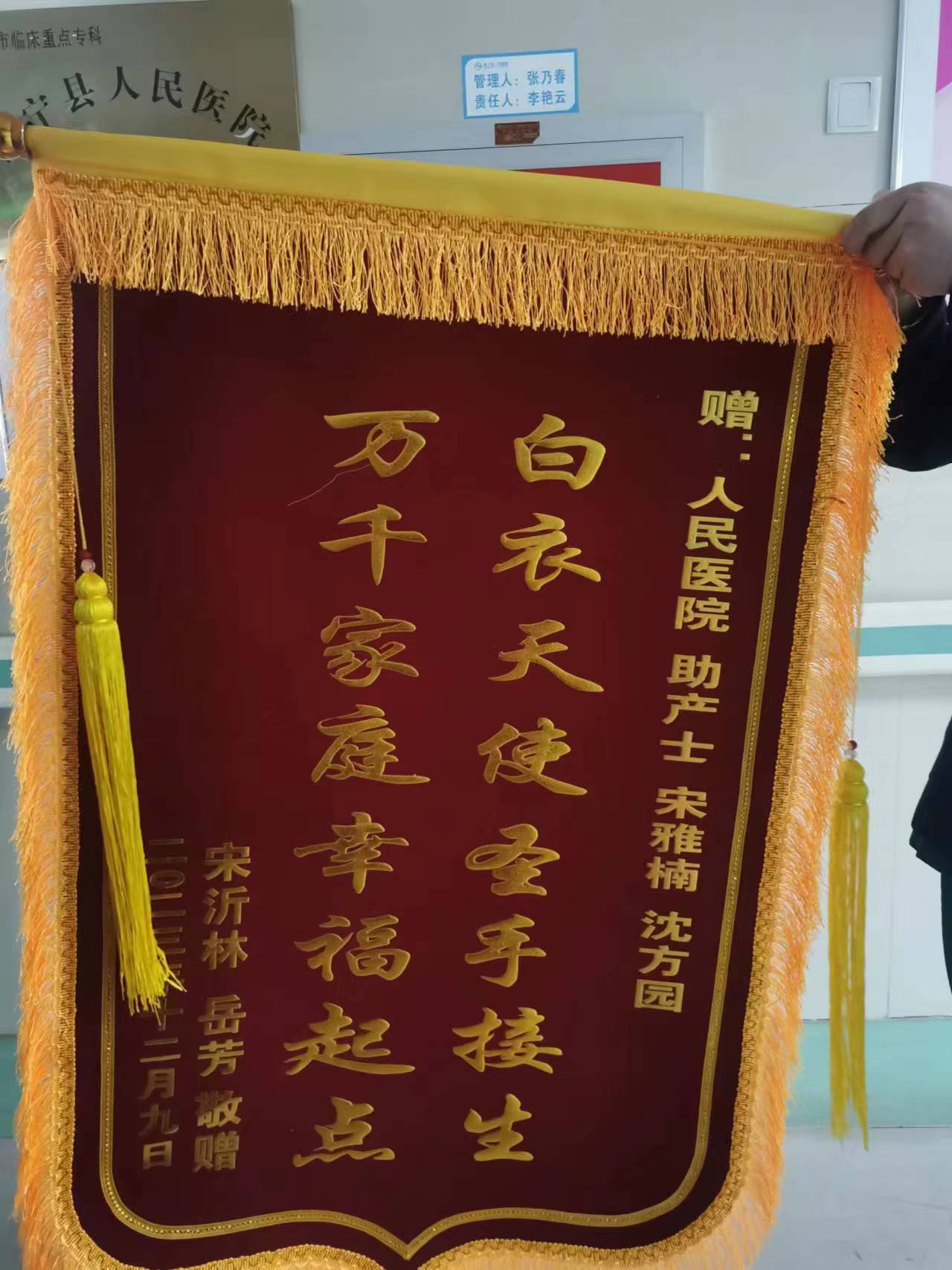 产妇送产房沈方园和宋雅楠锦旗一枚表示感谢