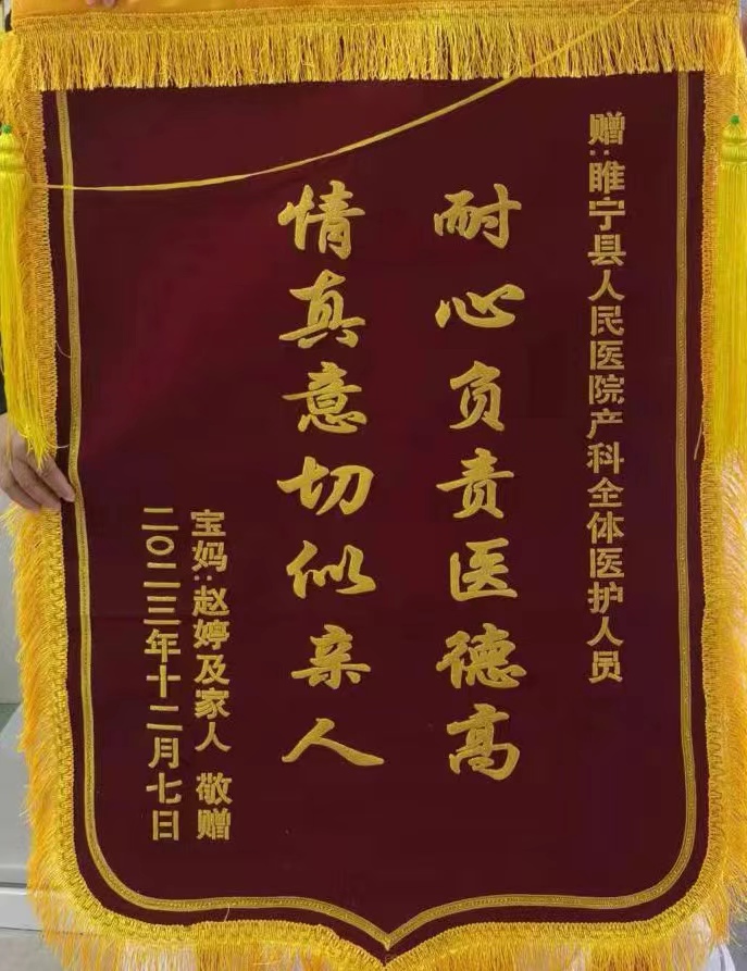 产妇送产房吴昳欣锦旗一枚表示感谢