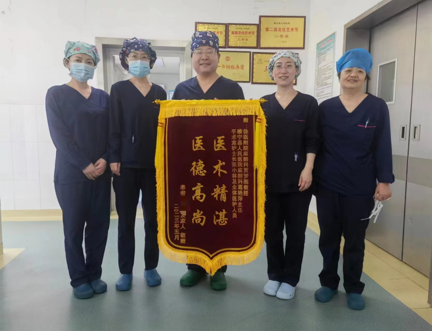 成功了!睢宁首例!日前,我院麻醉科、手术室收到了一面锦旗,患者家属袁先生表示,他父亲2个月前在这里做手术,术后恢复效果超过全家人的想象,特意来感谢麻醉科、手术室的医护人员在术前、术中和术后的全程精心治疗和关照。