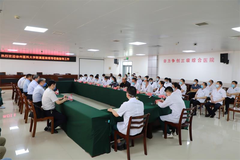 徐州医科大学附属医院联合我院召开医院高质量协同发展座谈会为有效提高我院整体医疗水平、服务能力及综合管理能力,推动医院高质量发展。5月27日下午,徐州医科大学副校长、徐医附院党委书记王人颢带领医院班子成员及相关部门