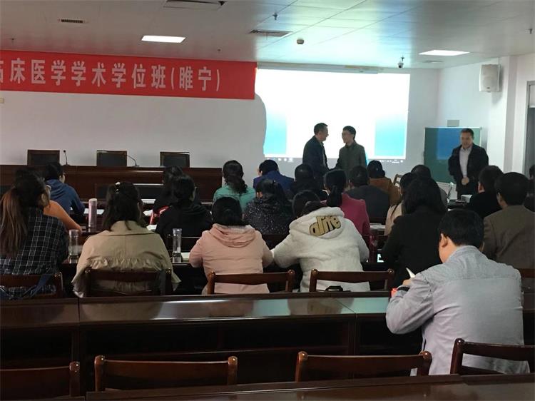 我院在职申硕研究生班开班啦!10月20日,我院研究生班开班,副院长翁华代表医院对35名学员今后的学习提出相关要求,科教科李阳科长宣读了睢宁县人民医院《徐州医科大学2018级同等学历硕士班(睢宁)管理规定》。