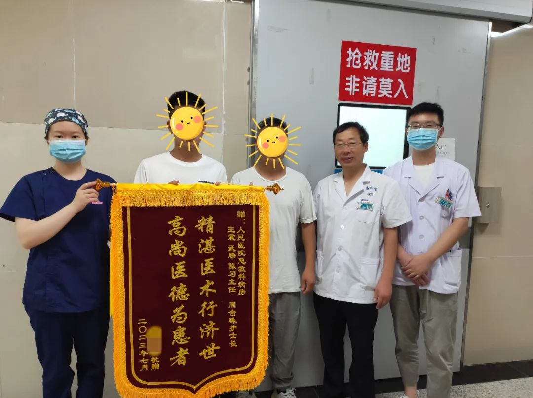 外地患者:“能碰上这样的医护团队是我的福气”近日,我院急诊科收到一面来自安徽灵璧患者送来的锦旗,上面写着“精湛医术行济世 高尚医德为患者”,锦旗中包含的是患者沉甸甸的信任与感谢,而这背后更是凝聚了一段命悬一线的惊险故事。