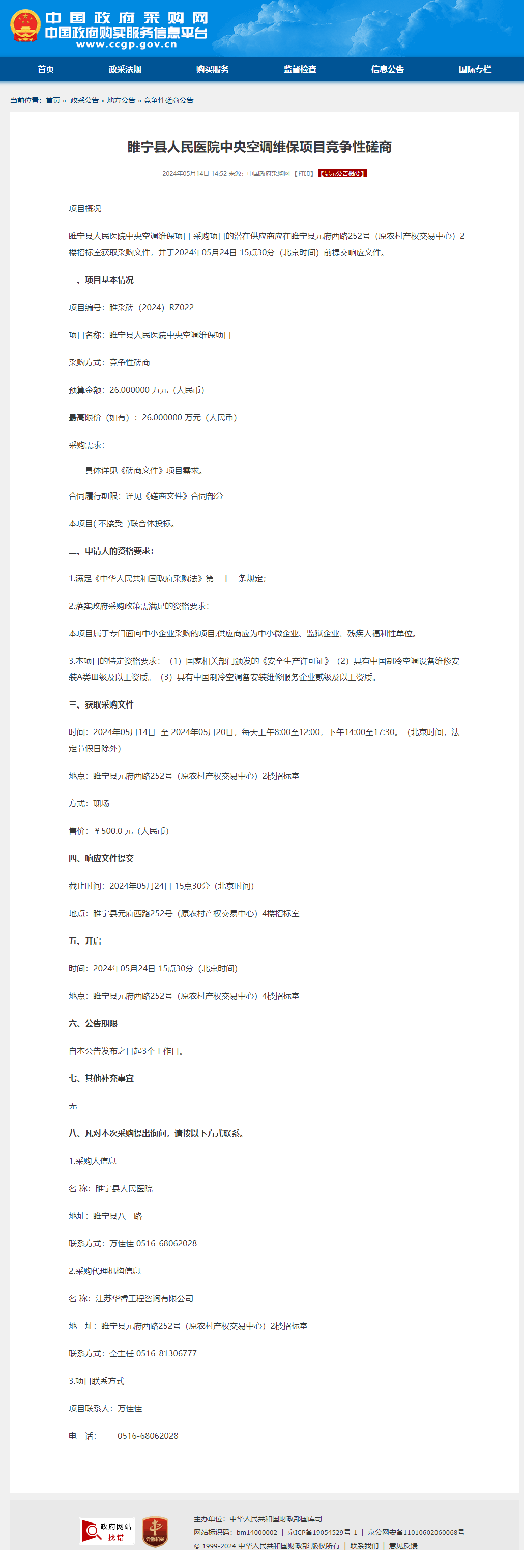 睢宁县人民医院内窥镜维保服务采购项目的竞争性磋商公告