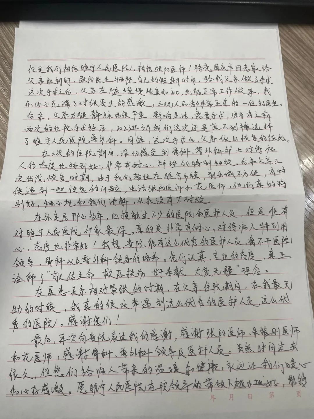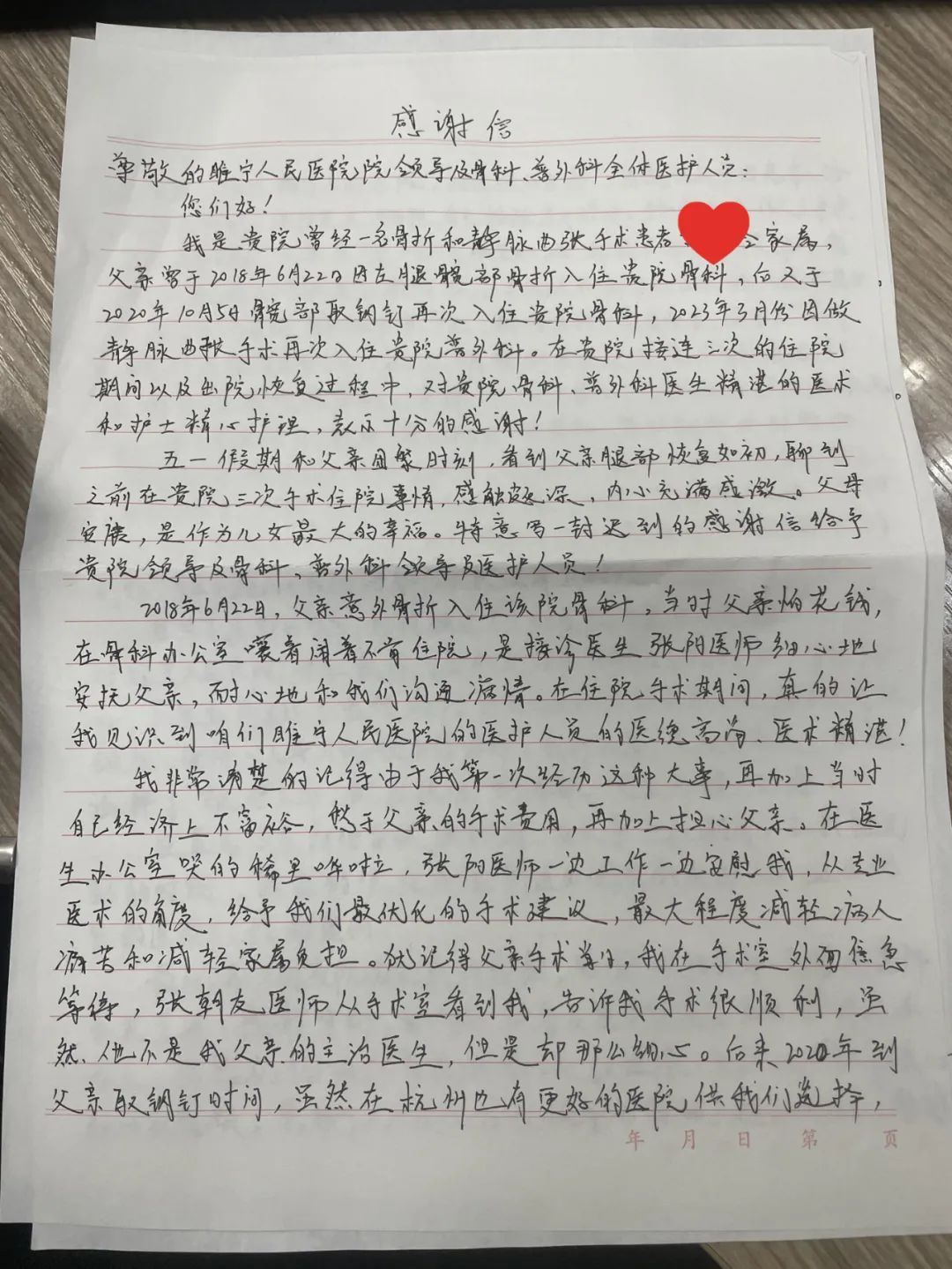 “在我父亲的三次住院期间,是我最无助的时候,我真的很庆幸遇到这么优秀的医护人员,这么优秀的医院,感谢您们......”患者家属深情的地写道。近日,我院收到了一封感人至深的信件。在这个信息快速传递的时代,患者及家属选择用纸笔记录下就医的温馨瞬间......