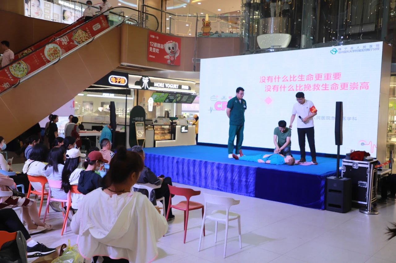 为提高广大公众对心肺复苏知识的知晓率,鼓励更多人参与学习、掌握心肺复苏和心脏除颤急救技术,提高院外心脏骤停救治成功率。近日,我院组织专家走进兴美广场开展“中国心肺复苏周”科普活动。