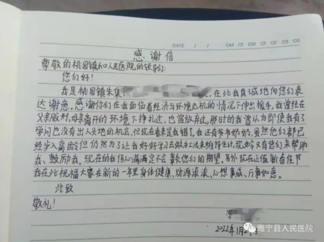 近年来,我院献爱心活动取得了显著成效,切实改善了困境儿童的生活状况,让他们重拾对美好生活的向往。就在今天上午,我院收到了来自帮扶儿童的一封感谢信,以信寄托自己的感激之情,感恩在最困难之时伸出援助之手的人们!