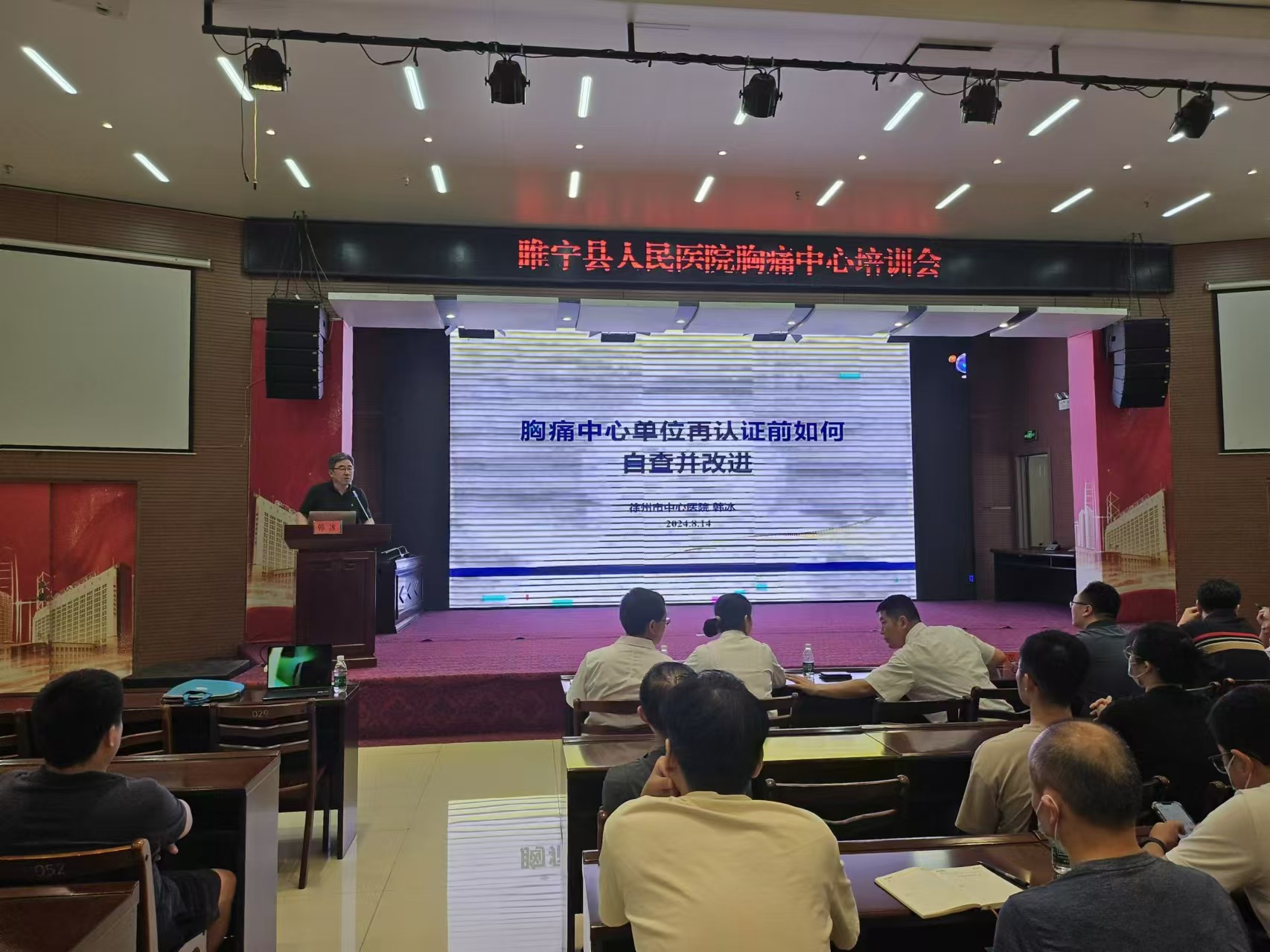 会上,徐州市中心医院心脏中心主任韩冰作“胸痛中心再认证培训”、徐州市中心医院心脏中心一病区副主任娄明作“胸痛医学专业质控指标解读”、睢宁县人民医院心内科主任王瑞利作“胸痛救治单元培训”,同时汇报了睢宁县心血管内科、胸痛专业医疗质量控制中心2024年工作计划。