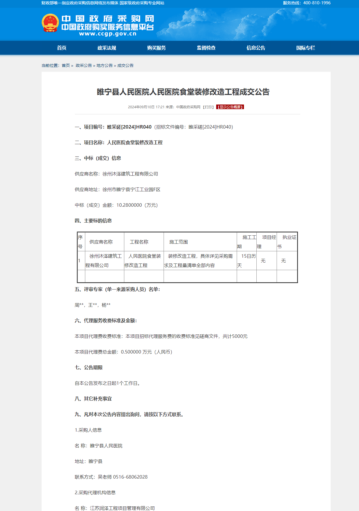 睢宁县人民医院人民医院食堂装修改造工程竞争性磋商