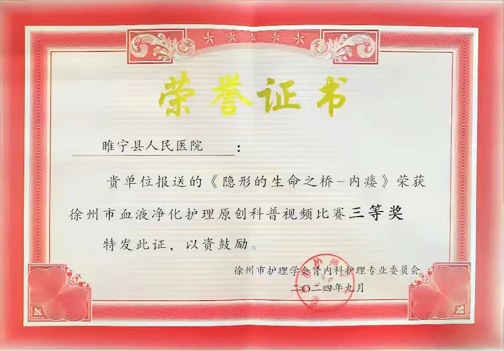 【喜报】我院血液净化中心在徐州市“血液净化护理原创科普视频 ”评比活动中喜获佳绩
