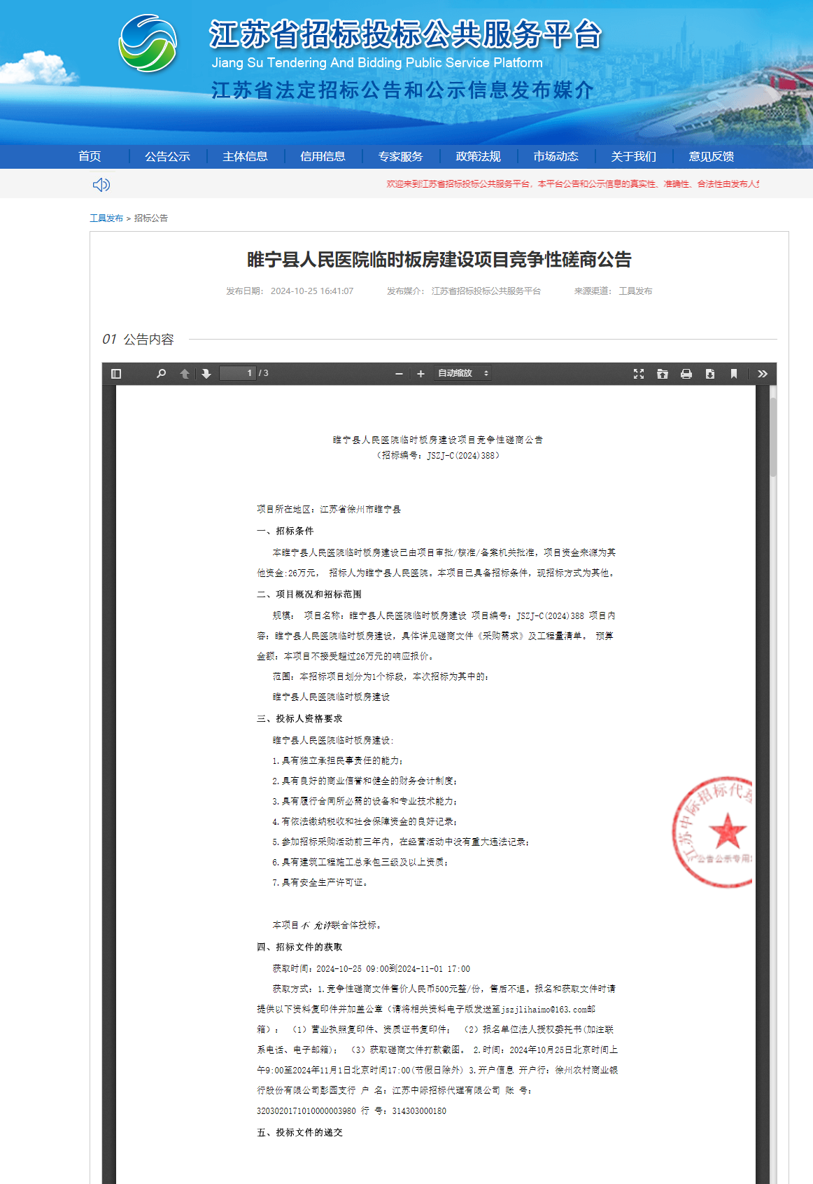 睢宁县人民医院临时板房建设项目竞争性磋商公告