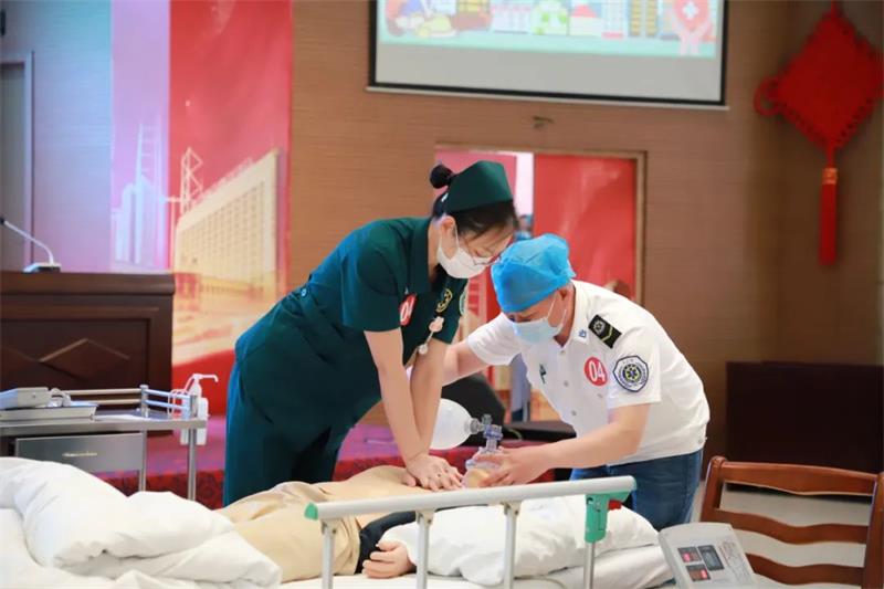 为进一步提升我院医务人员急救服务技能水平。6月7日,我院组织举办了2022年“科技宣传周”——心肺复苏技能竞赛,来自医院31个参赛团队,62名医护人员参加比赛,同时特邀徐医附院的2位专家担任评委。