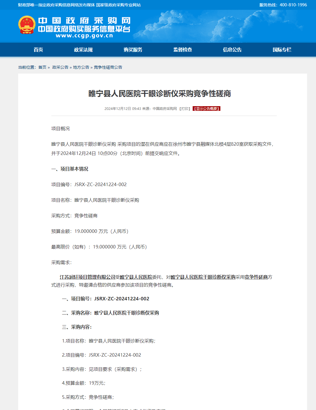 睢宁县人民医院干眼诊断仪采购竞争性磋商