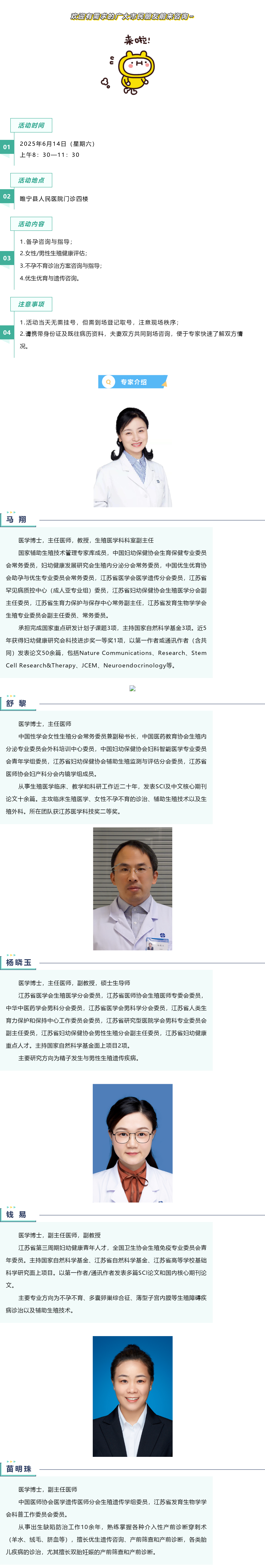 【义诊预告】6月14日,省人医生殖医学专家义诊活动走进睢宁