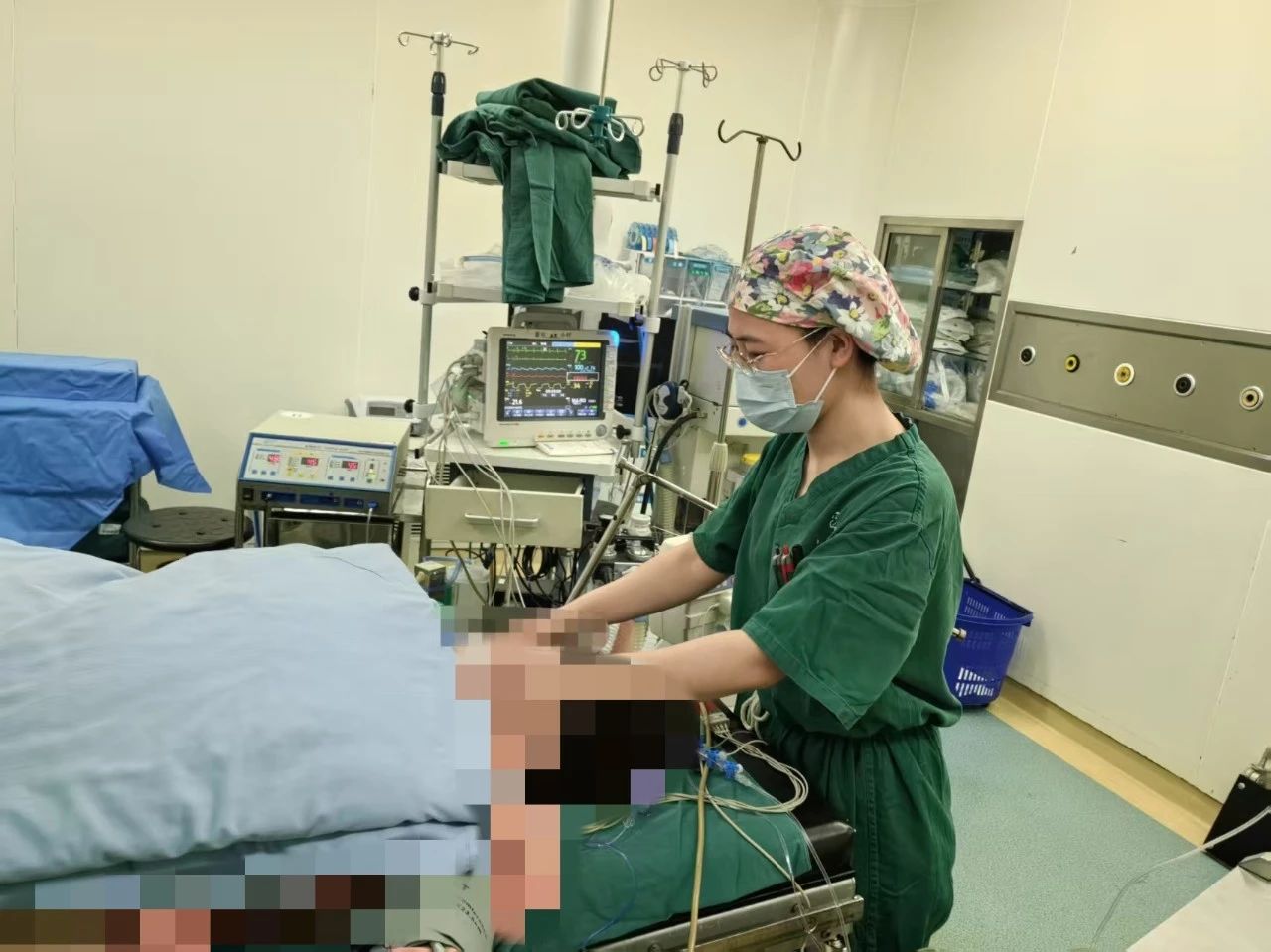 肝脏血供丰富,深部实质离断极易出血,是腔镜肝切除的核心风险所在。此次手术中,我院麻醉科葛艳萍主任和何婉琛麻醉医师通过先进监测技术与精准用药,将中心静脉压(CVP)严格控制在8cmH2O以下,有效降低静脉压力,减少术中失血。