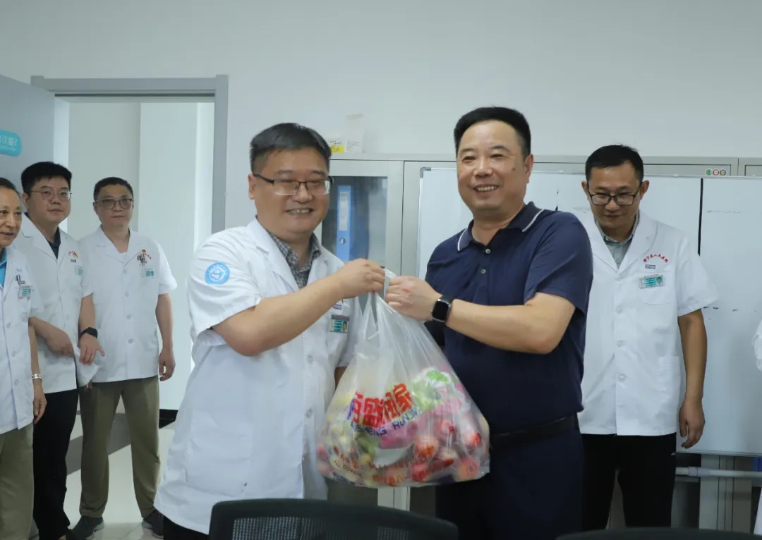 2025年8月19日,我们迎来了第八个 “中国医师节”,今年的节日主题为“德馨于行,技精于勤”。节日当天,我院姚亚东书记和院班子成员带领相关职能科室负责人,深入临床、医技科室一线,向辛勤工作在全院各个岗位的医师们送上了节日的慰问和祝福。