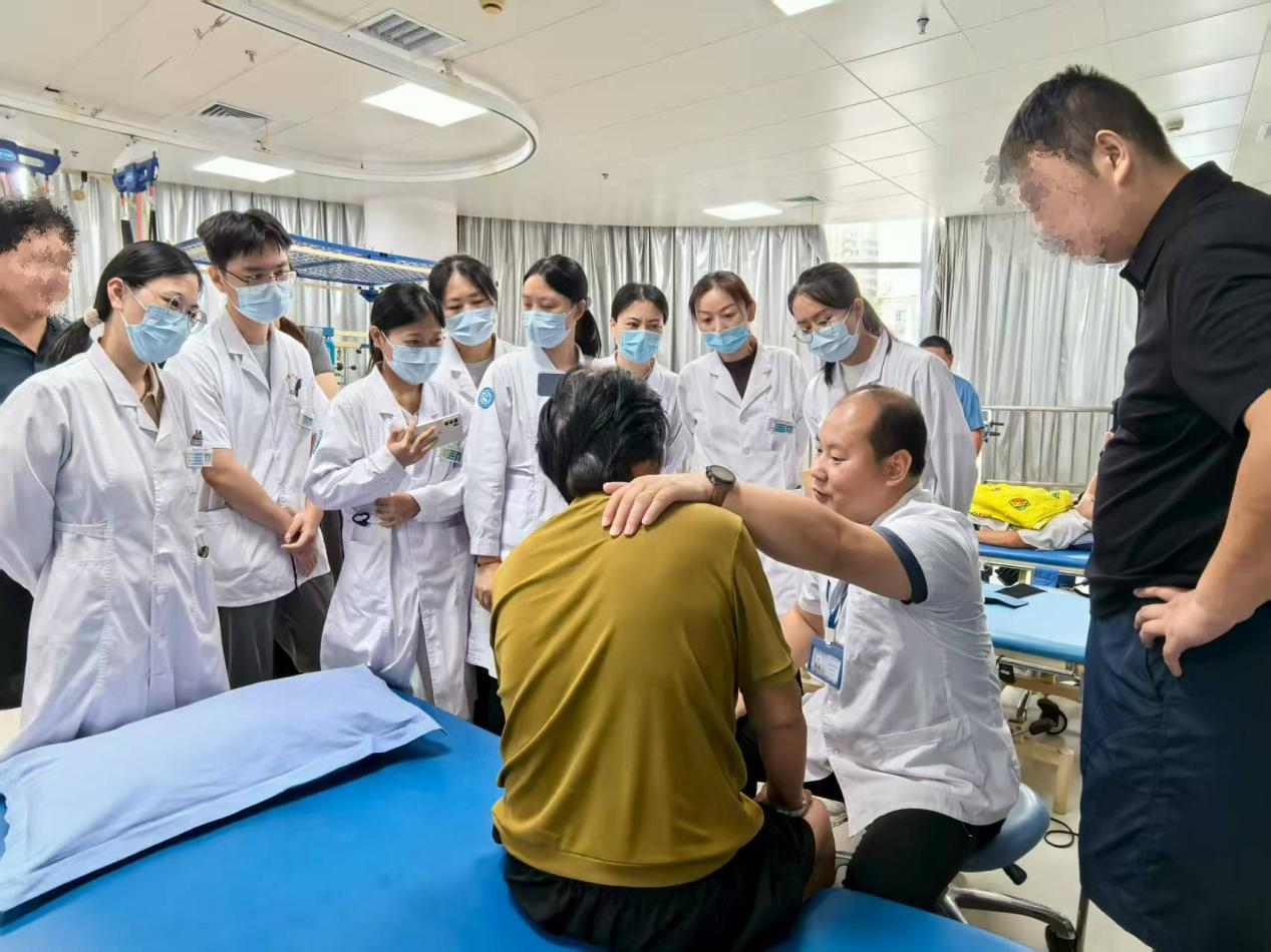 诊疗现场,顾昭华主任首先结合我院康复科的临床需求,开展针对性技术指导。随后,他针对科室接诊的多位疑难患者进行现场会诊,其中61岁的脑出血恢复期患者王先生(化名)的治疗过程,成为GCT整体控制 - 筋骨与脑功能促通技术疗效的生动例证。