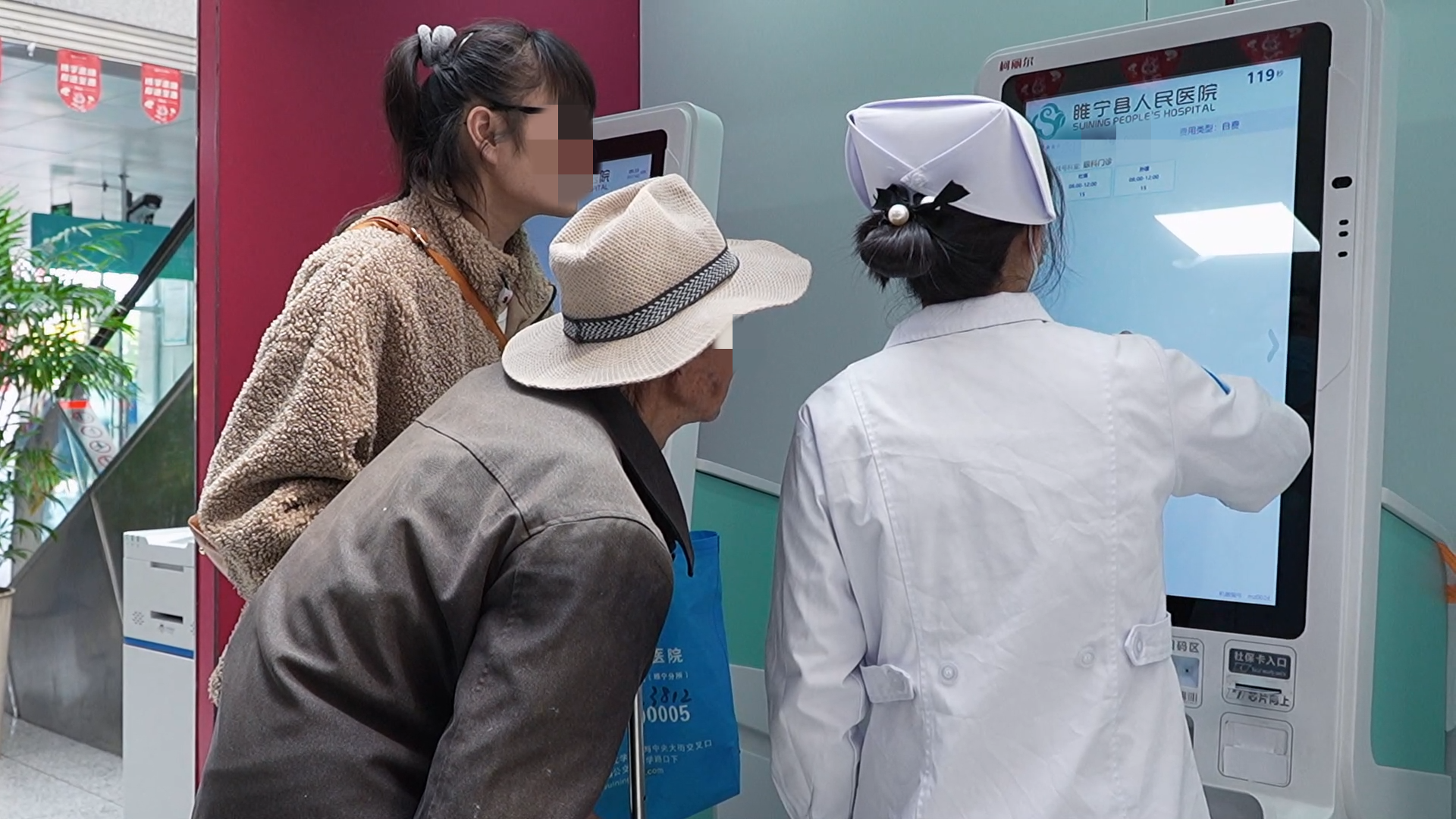 睢宁县人民医院将细节化、人性化的便民服务贯穿就医全流程。门诊各楼层自助机旁均有导医随时协助操作,住院、急诊大厅共享轮椅扫码即用,导诊台便民箱备有针线包、老花镜等用品,一楼售卖机提供各种医疗辅助用品,细微之处尽显关怀。