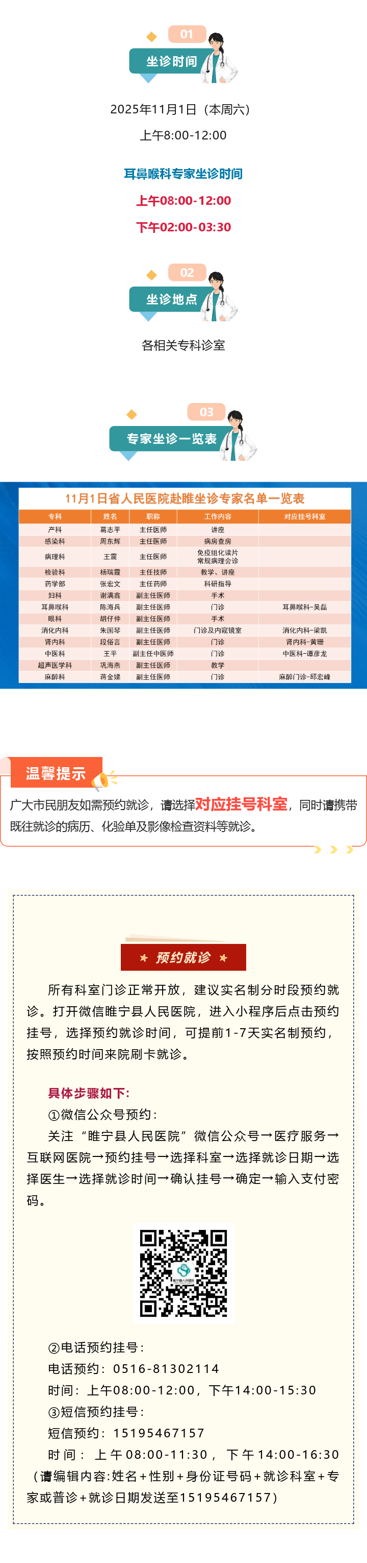 家门口看名医 | 11月1日江苏省人民医院专家坐诊信息!