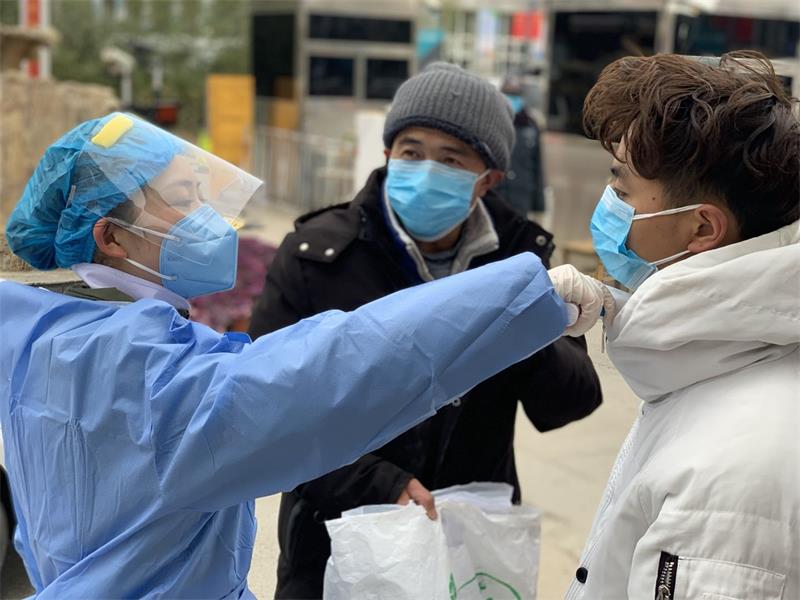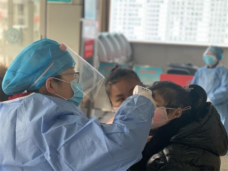 在预检分诊工作中,他们几乎全程站立,“你好,请请先测下体温”,“您最近有没有发热、咳嗽、乏力等症状”,同样的话每天要重复无数次;手臂一次次的举起来、放下去,因为天气寒冷,进入的人们的额头太凉,有时候会不准确,他们有对手腕、耳后部门进行测量。