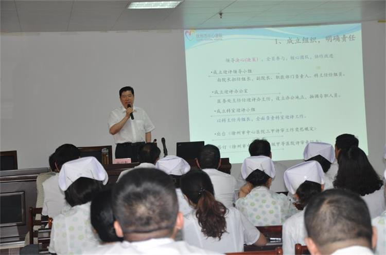 7月22日,徐州市中心医院院长张培影一行人来到我院进行指导工作。张培影院长以“医院质量管理持续改进,促进等级医院评审”为主题,运用通俗易懂、层层推进的形式,结合自身实际、给全院全体干部职工上了一堂别开生面的课程。我院朱林院长发表讲话:一是热烈欢迎张院长赴我院授业解惑、传经送宝;二是感谢徐州市中心医院一直以来对我院的关系与帮助;三是希望我院干部职工充分利用此次机会,增长见识,学到知识并学以致用,并以此为契机快速提升医院服务能力,积极推动医院又快又好的发展。