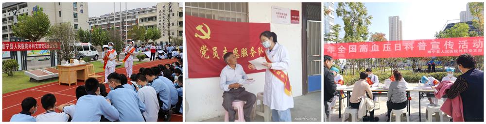 为增强党员的党性和为人民服务的宗旨,8月份开展了志愿活动,在门诊结合“母婴周”活动,让妇产科党员全院参加,在门诊给孕产妇做健康指导、咨询、讲课。9月份结合健康科普走近社区、走进学校,进行科普教育,发挥党员的先锋作用。