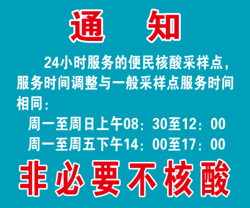 1、24小时服务的便民核酸采样点,服务时间调整与一般采样点服务时间相同。