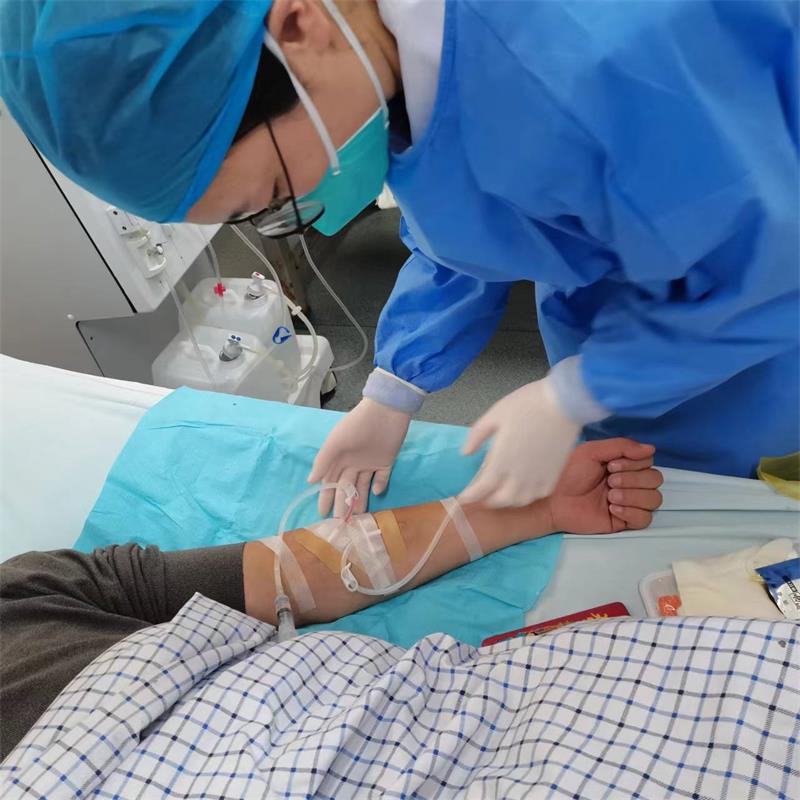 血透患者身体抵抗力低下,遇到新冠病毒袭击无疑雪上加爽,身体不适、食欲不振,夜间突发高钾有心跳骤停的风险。12月20日凌晨30分,护士王九龙接到患者高钾需要紧急透析的指令,便立即快马加鞭地第一时间赶到医院,给患者吸氧、心电监护、用药,上机看护,一直忙到凌晨4点多。