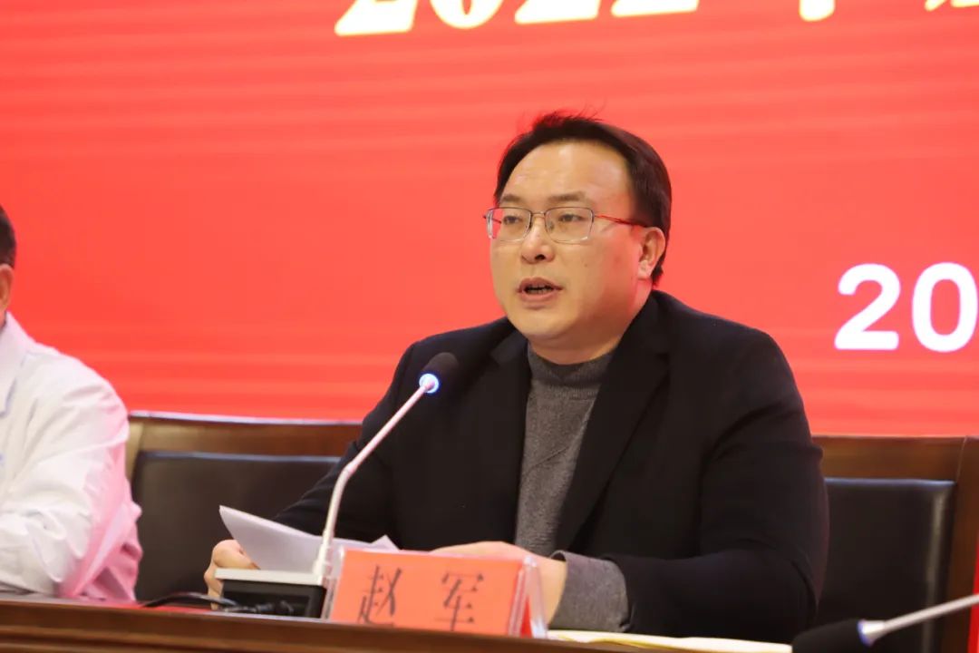最后,我院党委书记赵军作总结发言。他首先向获得表彰的先进集体和个人表示热烈的祝贺,向过去一年在各自平凡岗位上辛勤工作的全院干部职工表示衷心的感谢,并结合医院2023年工作重点任务对全院职工提出四点要求: