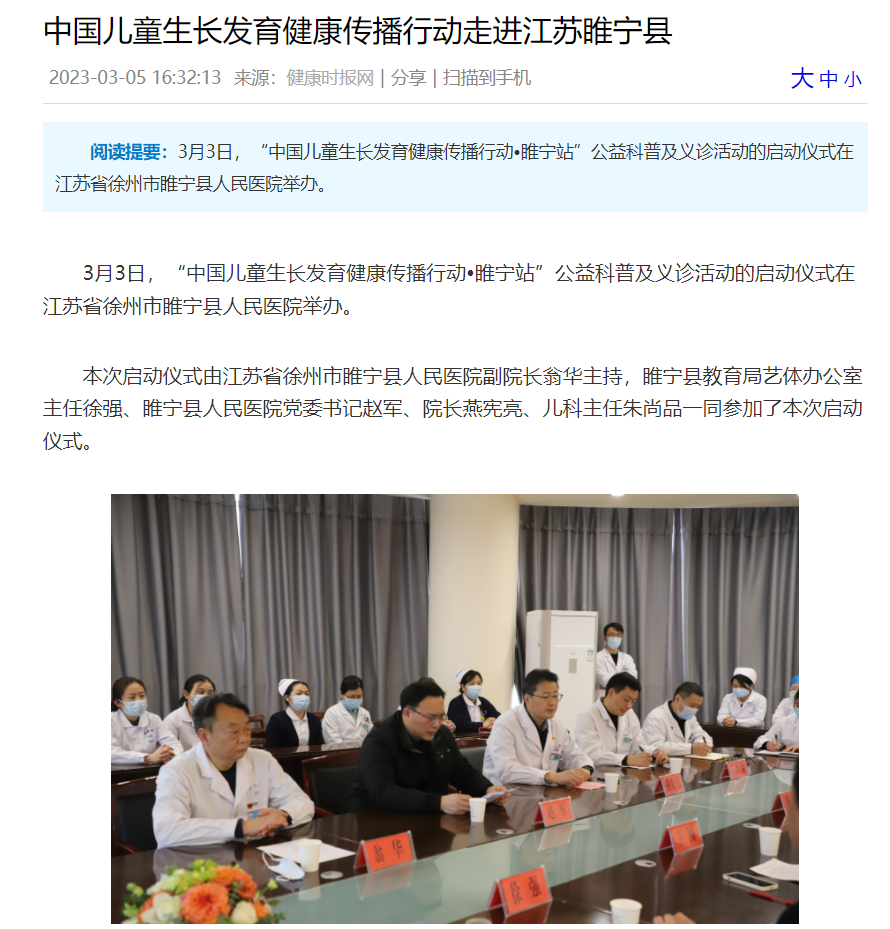 “中国儿童生长发育健康传播行动(睢宁站)”在我院启动
