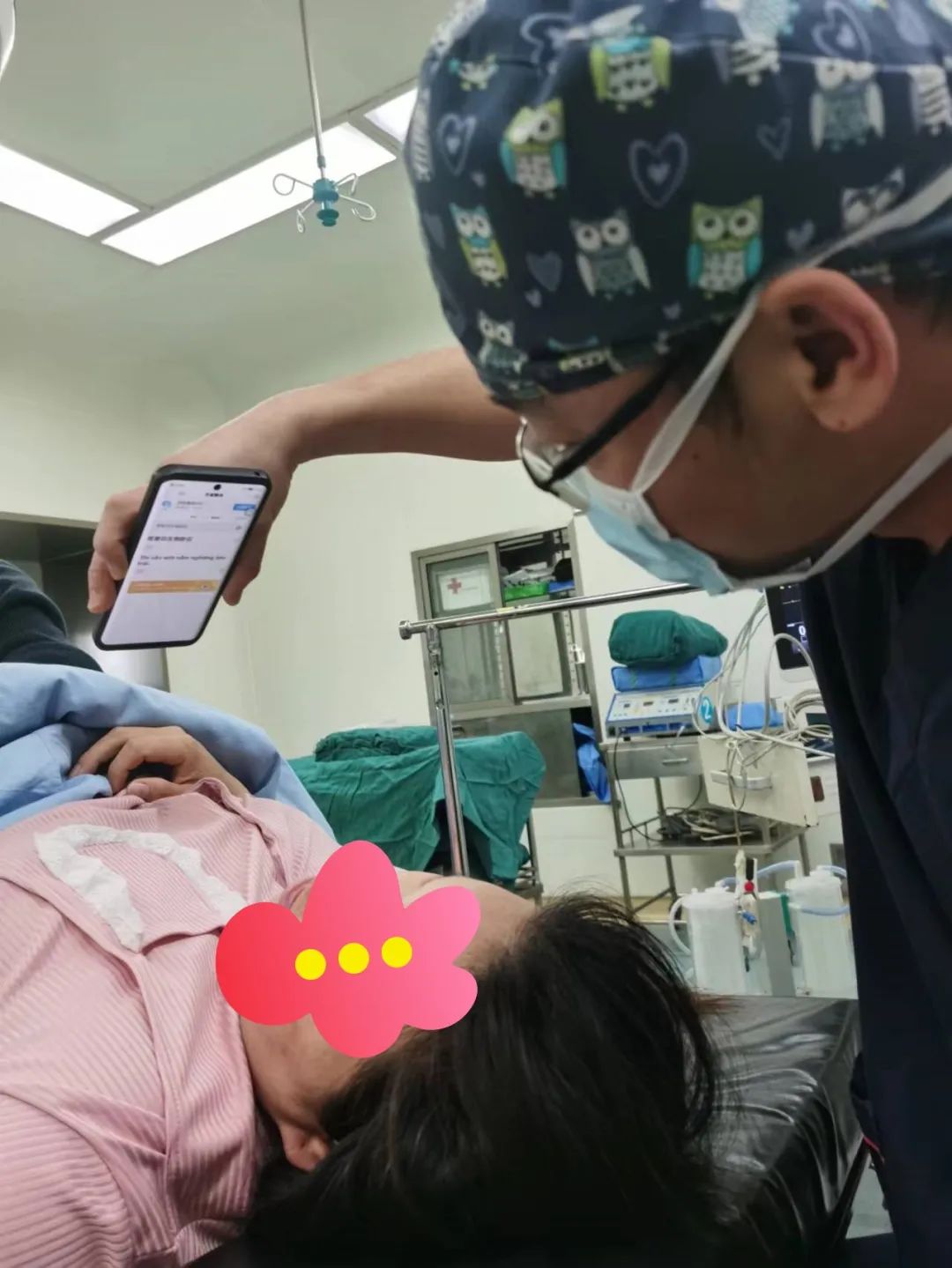 由于产妇是越南人,无法用中文或者英文进行沟通,同时陌生的环境让产妇非常紧张和恐惧。见此情形,邱泉泉医师利用手机翻译软件耐心的与产妇沟通麻醉方式和麻醉体位,为了让产妇明白,邱泉泉再加以肢体语言,亲自演示如何摆体位,直到产妇明白为止。
