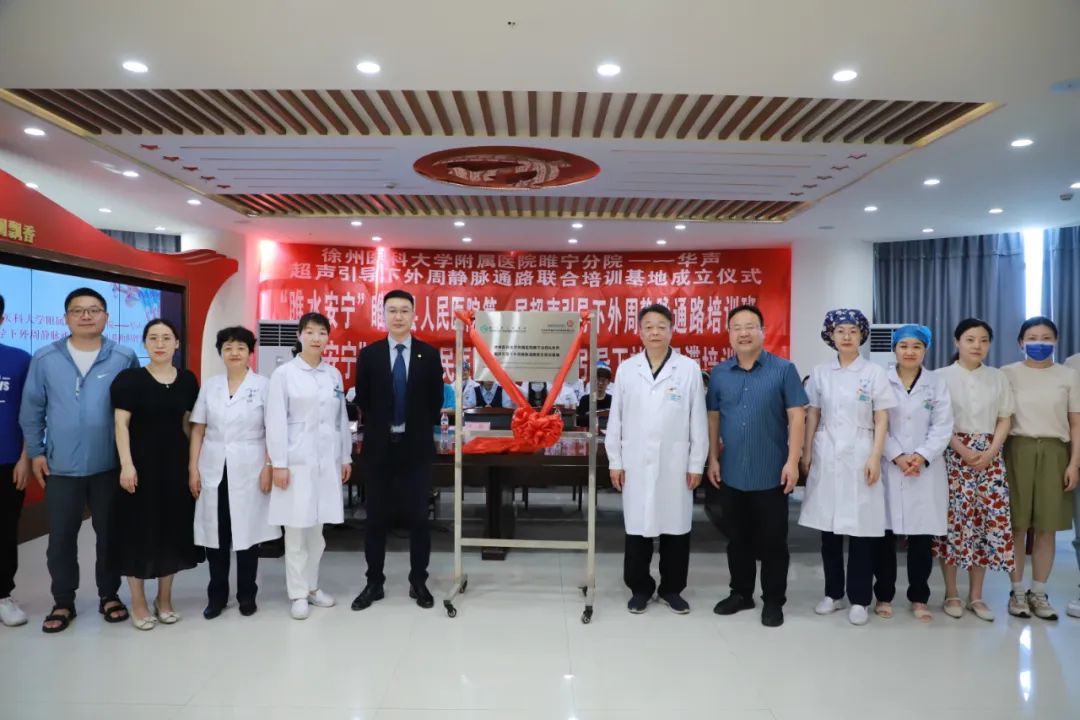 在热烈的掌声中,“睢宁县人民医院超声引导下外周静脉通路培训基地”正式揭牌,这是全国首家超声引导下外周静脉通路培训基地。