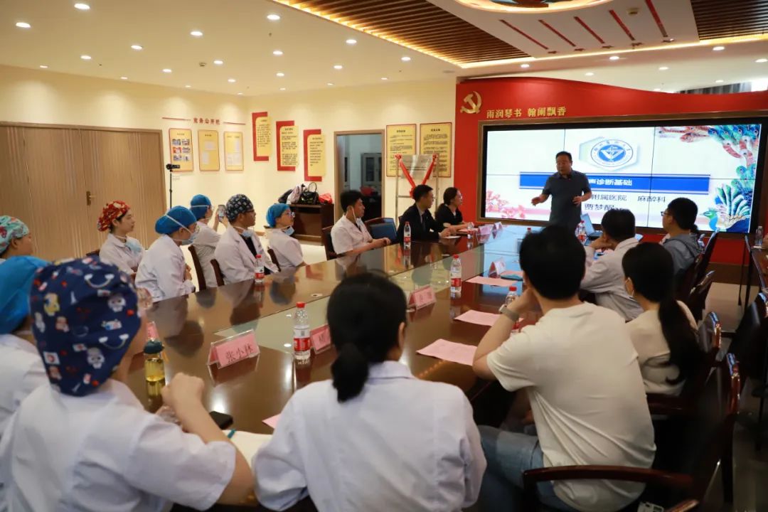 揭牌仪式结束后,徐医附院麻醉科驻睢专家贾梦醒教授分别以《超声基础》、《超声引导下外周静脉通路穿刺置管术》为题进行授课,他结合临床麻醉和护理实际工作,深入浅出地讲解超声基础知识,从超声的基础物理知识到超声仪器的原理;超声声像图的解读和超声仪器的使用与维护,让大家对超声的基础知识有了深入的了解。同时从静脉的解剖结构到超声下动静脉的声像图解读;超声引导下外周静脉穿刺到深静脉穿刺,详细讲解了我院开展超声引导下外周静脉通路的培训过程。