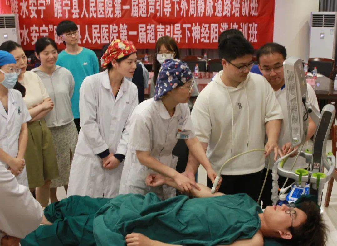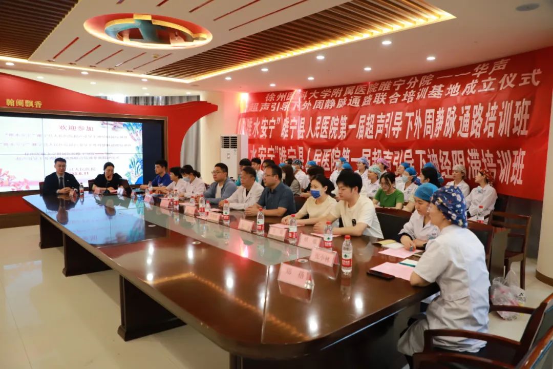 6月11日上午,“睢水安宁”睢宁县人民医院超声引导下神经阻滞培训班、超声引导下外周静脉通路培训班暨超声引导下外周静脉通路联合培训基地揭牌仪式在我院门诊四楼会议室成功举办。本次培训班邀请了多位超声专家和骨干进行授课,对目前超声引导下神经阻滞、超声引导下外周静脉通路的新方法、新理念进行专题授课,为学员们呈现了一场丰盛的学术盛宴。