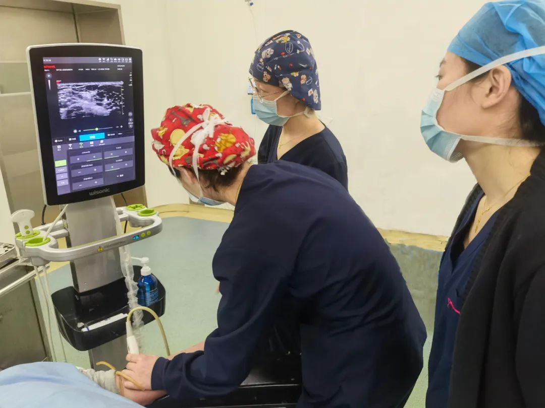 目前,我院手术麻醉科率先在国内实现全员超声引导下浅静脉留置针穿刺技术,全程可视化外周静脉通路技术,不仅在穿刺前可以对血管通路进行评估和选择,在确定靶血管后再次对靶血管的管径、深度、走形、通畅性、周围组织等进行评估,穿刺时全程可视引导,缩短穿刺时间,提高一次置管成功率。