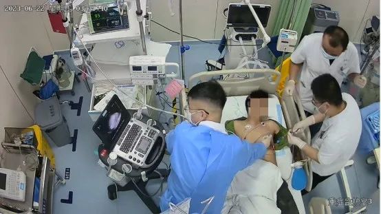 CT检查显示患者心包积液、上纵膈大血管周围血肿、右颈内静脉血栓。“患者前胸撞击,需立即行彩超引导下心包穿刺抽液,否则患者随时有死亡风险。”接诊的急诊EICU王震医师焦急的说。