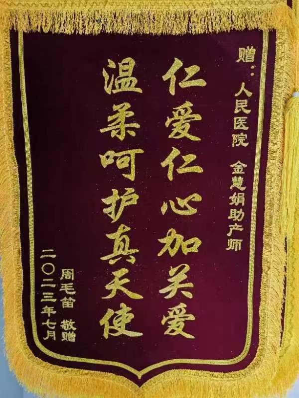 患者送产房金慧娟锦旗一枚表示感谢