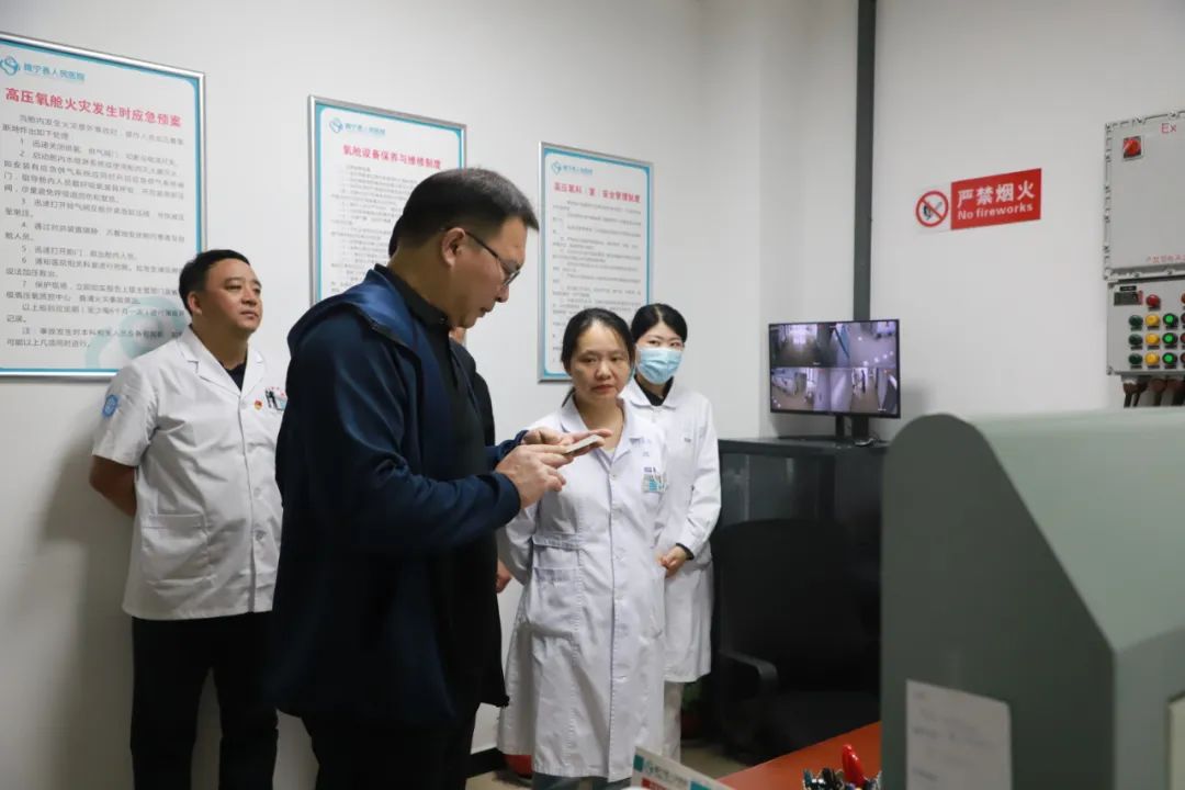 院领导实地查看了急诊抢救室、消防控制室、配电室、液氧罐、职工食堂等重点区域,针对医疗安全、消防安全、安全用水用电用气、特种设备等方面进行了督导检查。“全方位、无死角”全面排查安全隐患,确保不遗漏一个环节、不疏忽一个细节,防患于未然。