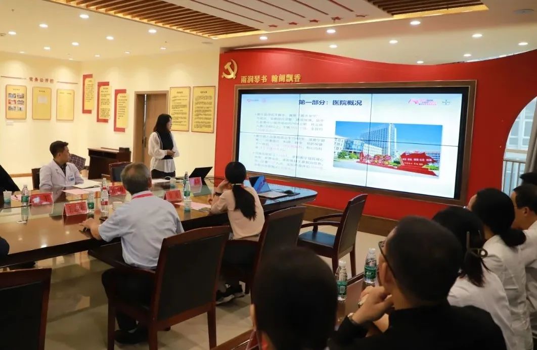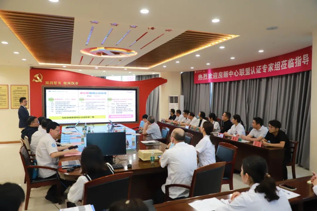 随后,专家组介绍了房颤中心建设意义、现状和现场认证流程。心内科第一主任陈文苏通过PPT形式详细介绍了科室在医疗能力、科室管理、科研教学、人才培养等方面情况,同时就医院房颤中心的建设及运行所取得的成绩进行了汇报。