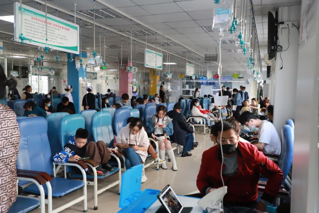 在儿科门诊、诊疗室甚至门诊外的过道,都被挤得水泄不通。针对支原体肺炎高峰,医院增开儿科诊室,增加门诊医生、护士数量,从住院部抽调医护人员前来支援,从而保障患儿的就医需求。