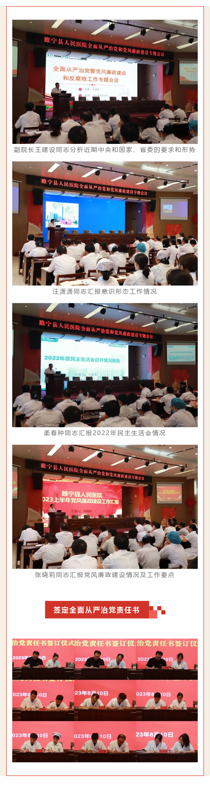 此次全面从严治党和党风廉政建设专题会议的举行,切实引导广大医务人员知敬畏、守底线,时刻敲响警钟,做到不为利所缚、不为欲所惑,打造党风清正、院风清朗、医风清新、行风清明的清廉医院形象,为医院高质量发展再上新台阶提供坚实保障和不竭动力。