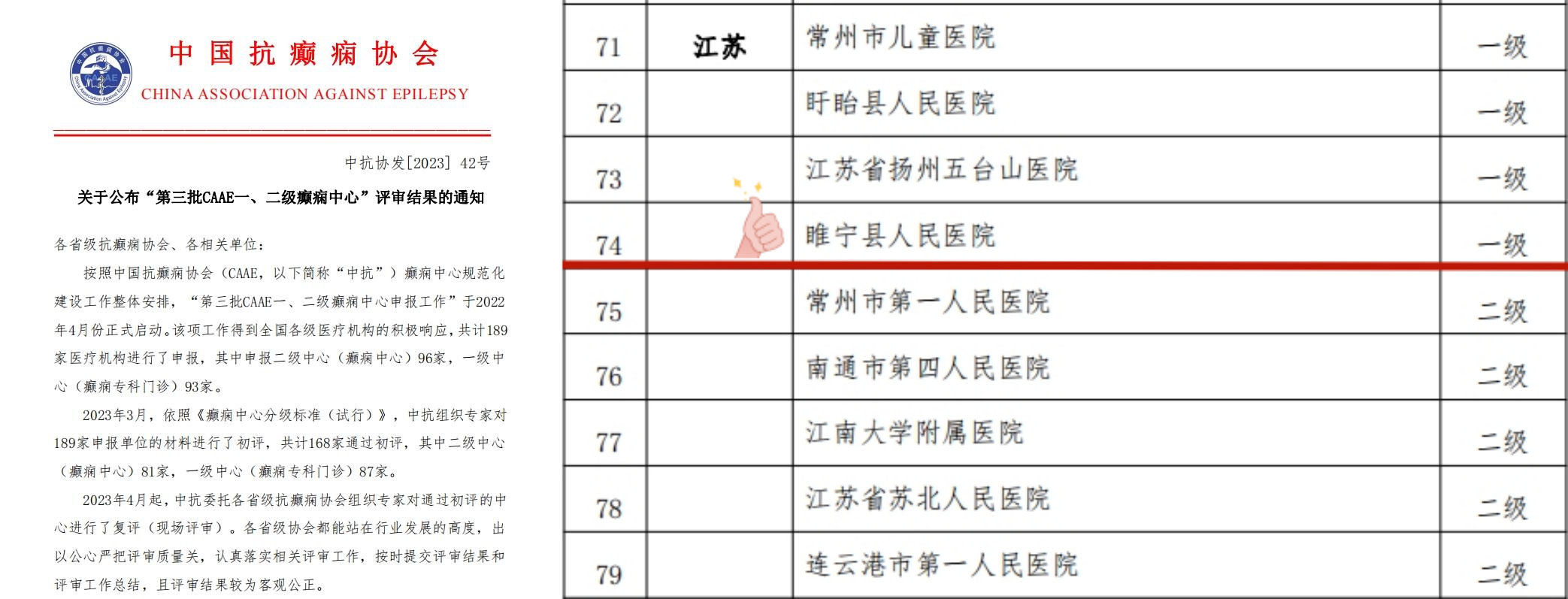 10月30日,中国抗癫痫协会公布了“第三批CAAE一、二级癫痫中心”评审结果,我院癫痫中心顺利通过中国抗癫痫协会专家组的现场评审,被授予“中国抗癫痫协会一级癫痫中心”称号,成为全市县区首家通过认证的医院。