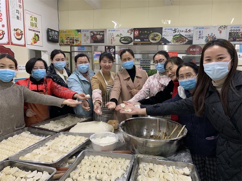 卷起袖管,齐动手,你擀皮来,我包馅儿,分工合作,大家忙得不亦乐乎。院党委书记、院长张涛和大家一起包饺子,不会的现学也学得有模有样,在大家的欢声笑语中,整个食堂欢乐祥和、喜气洋洋,洋溢着浓浓的节日氛围。