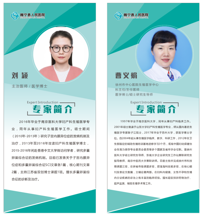 每周由徐州市中心医院生殖医学中心主任曹义娟教授、刘颖博士现场坐诊,为我县不孕不育患者提供科学、规范、全面的不孕不育临床诊疗服务,助不孕不育病友“好孕”到家。
